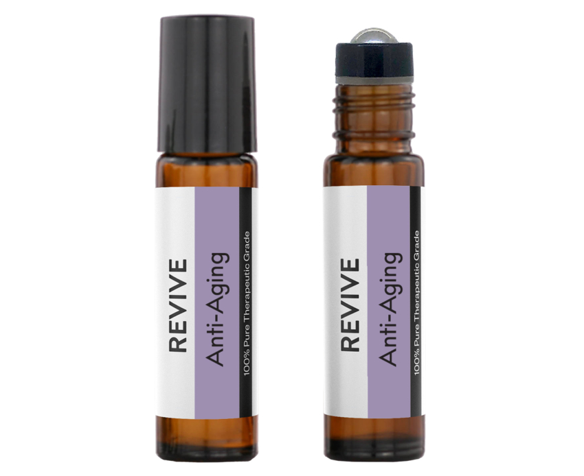 REVIVE Anti-Aging 10mL Roll-On is a proprietary blend of Frankincense Resin, Sandalwood, Lavender Flower, Myrrh Gum Resin, Helichrysum Flower, and Rose Flower essential oils.