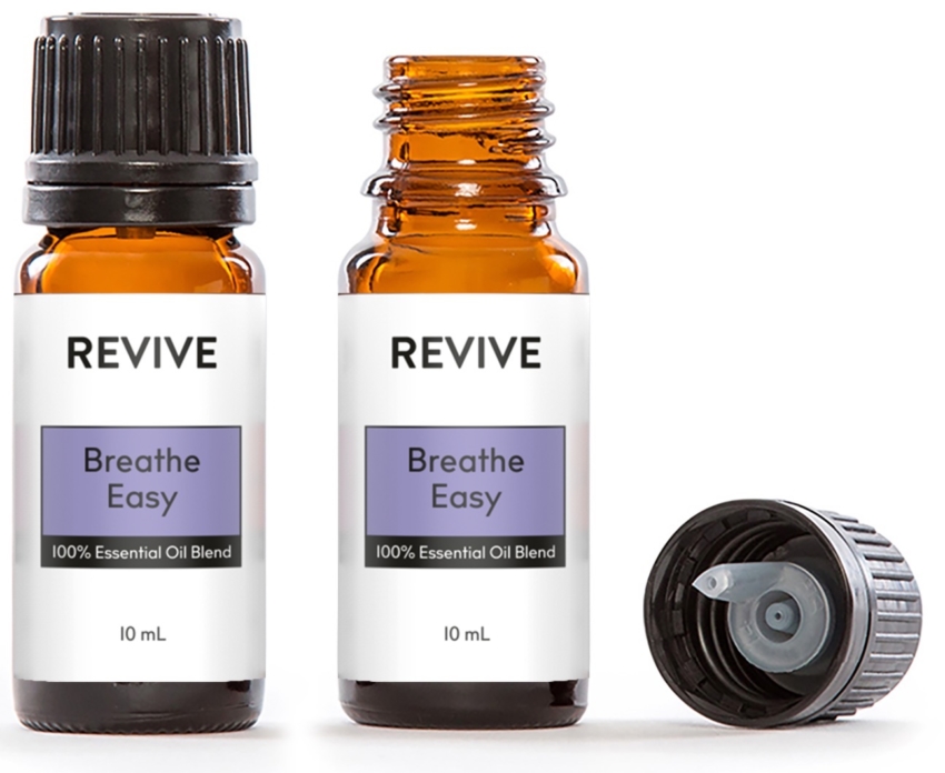 REVIVE Breathe Easy is a proprietary blend of Eucalyptus, Myrtle, Marjoram, Lavender, Cypress, Black Spruce, Peppermint Essential Oils