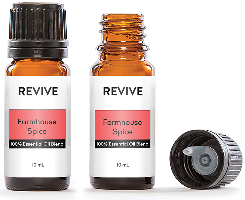 REVIVE Farmhouse Spice is a proprietary blend of Juniperus mexicana (Texas Cedarwood) Wood Oil, Cupressus funebris (Chinese Weeping Cypress) Wood Oil, Vetiveria zizanioides (Vetiver) Root Oil, Pogostemon cablin (Patchouli) Leaf Oil, Cistus ladanifer (Labdanum) Resin Absolute, Citrus aurantium amara (Petitgrain) Leaf Oil, Vanilla planifolia (Vanilla) Fruit CO2 Extract, Boswellia carterii (Frankincense) Resin Oil, Pelargonium graveolens (Geranium) Flower Oil, Aetoxylon sympetalum (White Oud) Wood Oil, Cistus ladanifer (Cistus) Leaf Oil, Cananga odorata (Ylang Ylang) Flower Oil, Lavandula angustifolia (Lavender) Flower Oil, Coriandrum sativum (Coriander) Seed Oil, Evernia prunastri (Oakmoss) Absolute, Jasminum grandiflorum (Jasmine) Flower Absolute, Eugenia caryophyllata (Clove) Bud Oil, Rosa damascena (Rose) Flower Absolute, Cuminum cyminum (Cumin) Seed CO2 Extract, Betula pendula (Birch) Tar Oil [rectified]