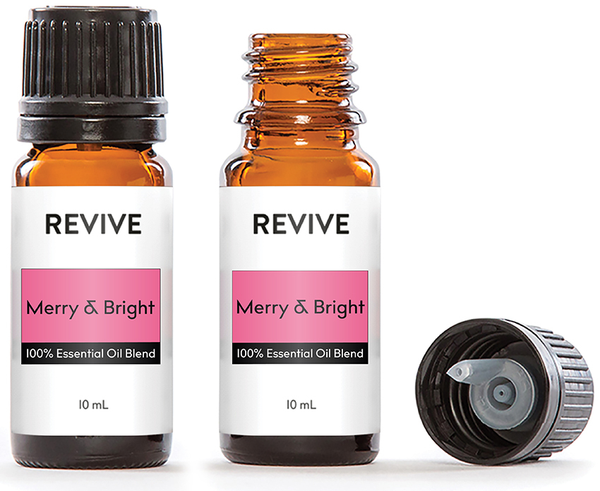 REVIVE Merry & Bright is a proprietary blend of Copaiba, Bergamot, Cedarwood, and Grapefruit Essential Oils.