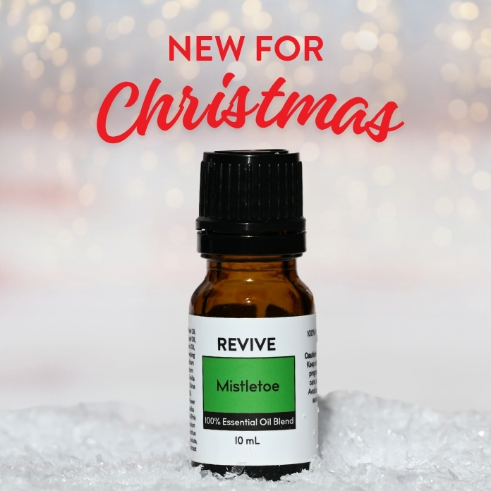 REVIVE Mistletoe is a proprietary blend of Citrus sinensis (Sweet Orange) Peel Oil, Pogostemon cablin (Patchouli) Leaf Oil, Myroxylon pereirae (Peru Balsam) Oil, Cupressus funebris(Chinese Weeping Cypress) Wood Oil, Santalum album (Sandalwood) Wood Oil, Origanum majorana (Marjoram) Leaf Oil, Vanilla planifolia (Vanilla) Fruit Extract, Citrus bergamia (Bergamot) Peel Oil, Lavan-dula hybrida (Lavandin) Flower Oil, Copaifera langsdorffii (Copaiba Balsam) Resin Oil, Schinus molle (Pink Pepper) Fruit Oil, Nicotiana tabacum (Tobacco) Leaf Absolute, Osmanthus fragrans (Osmanthus) Flower Absolute, Ferula galbaniflua (Galbanum) Extract