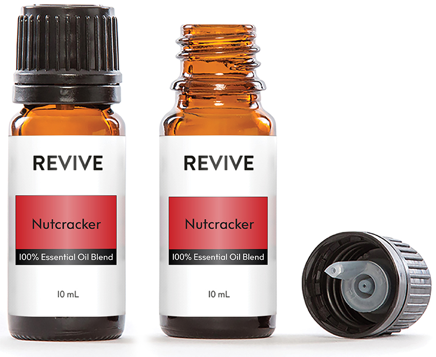 REVIVE Nutcracker is a proprietary blend of Amyris, Vanilla Extract, Palmarosa, Ho Wood, Bay Laurel, Clary Sage, and Copaiba Essential Oils.
