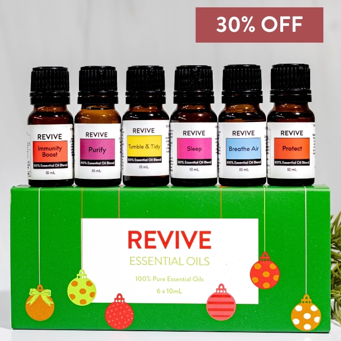The Top 6 Blends Kit contains our most popular REVIVE Essential Oils blends: Immunity Boost, Purify, Tumble & Tidy, Sleep, Breathe Air, Protect!